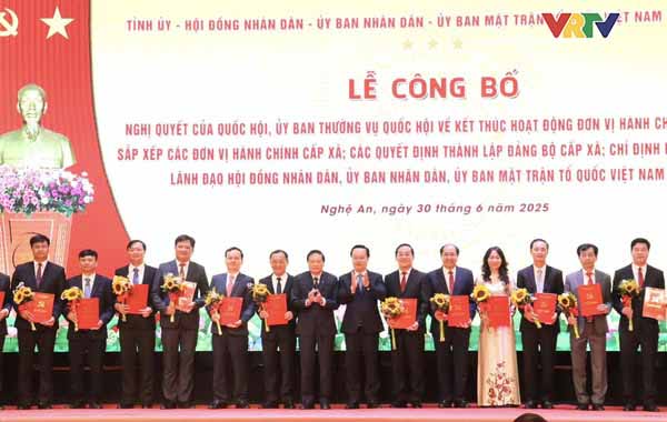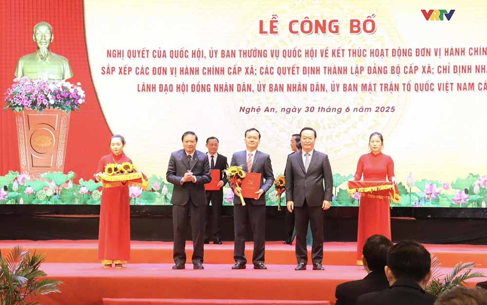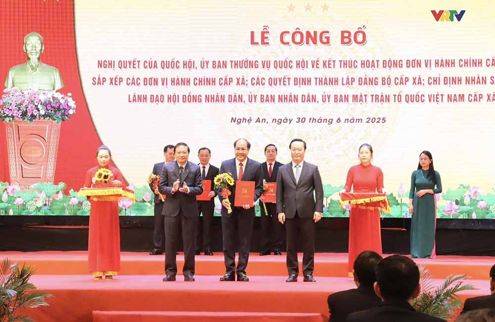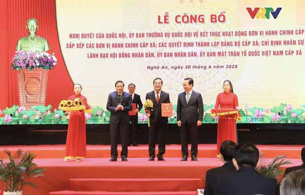 Sáng ngày 30/6/2025, tỉnh Nghệ An tổ chức Lễ công bố các nghị quyết, quyết định về thực hiện mô hình chính quyền địa phương 2 cấp. Đồng chí Nguyễn Đức Hải – Ủy viên Ban Chấp hành Trung ương Đảng, Phó Chủ tịch Quốc hội thay mặt lãnh đạo Đảng, Nhà nước dự tại điểm cầu trung tâm tại TP. Vinh. Cùng dự có các đồng chí lãnh đạo các ban ngành Trung ương. Lãnh đạo tỉnh Nghệ An có các đồng chí: Nguyễn Đức Trung – Bí thư Tỉnh ủy; Hoàng Nghĩa Hiếu – Phó Bí thư Thường trực Tỉnh ủy, Chủ tịch HĐND tỉnh; Lê Hồng Vinh – Phó Bí thư Tỉnh ủy, Chủ tịch UBND tỉnh; Võ Thị Minh Sinh – Phó Bí thư Tỉnh ủy, Chủ tịch Ủy ban MTTQ Việt Nam tỉnh, Trưởng đoàn ĐBQH tỉnh Nghệ An.