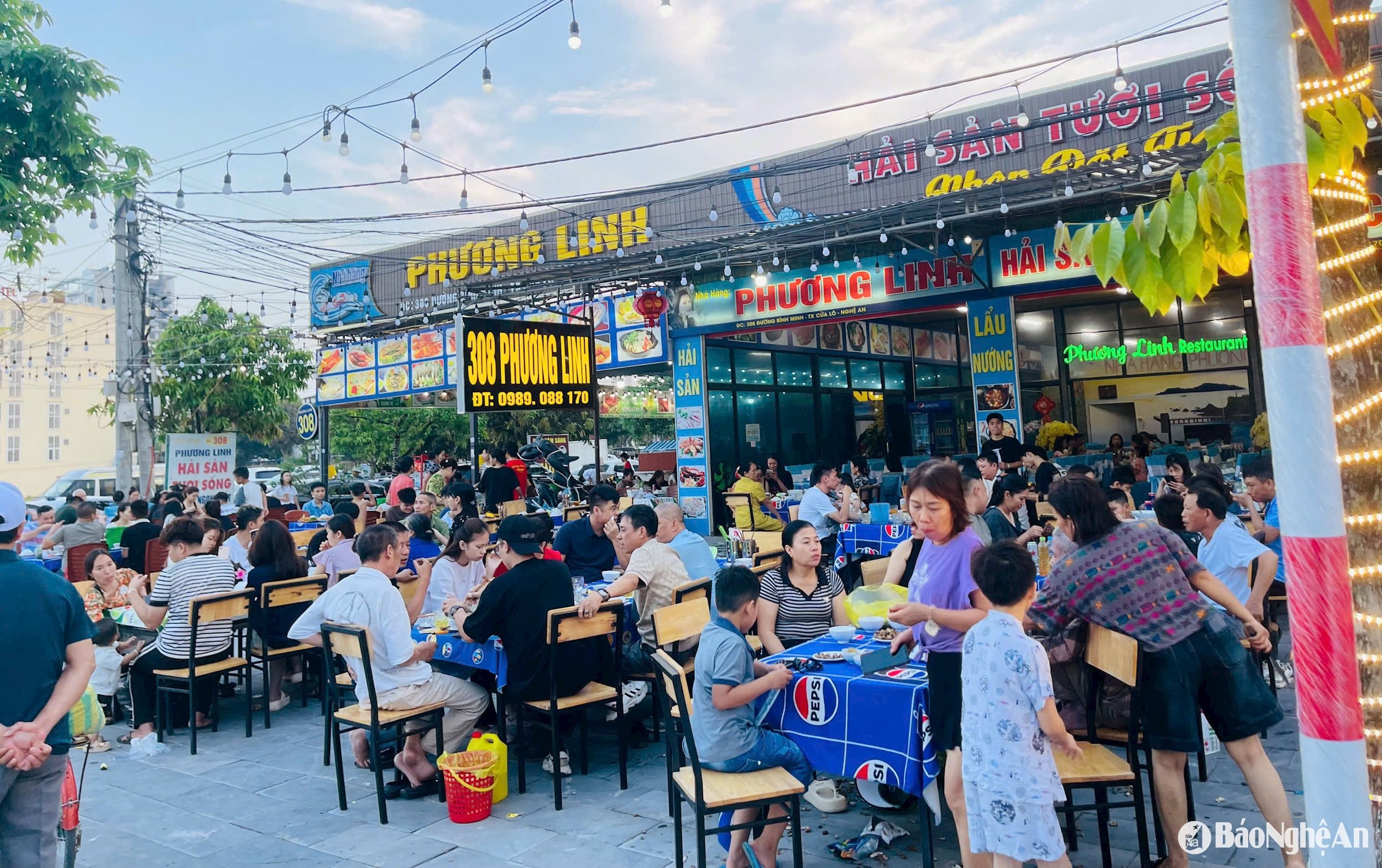 Các hàng quán, cơ sở kinh doanh dịch vụ ăn uống làm việc hết công suất phục vụ du khách. Ảnh: Quang An
