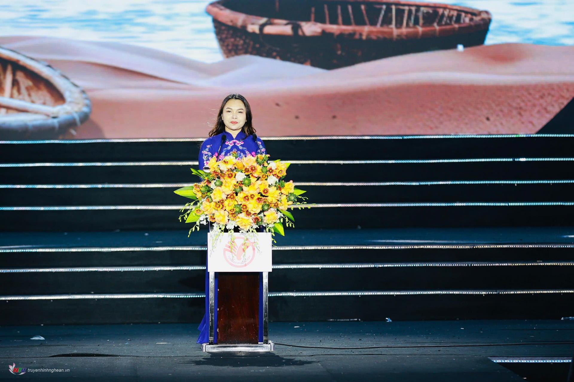 Đồng chí Trần Thị Cẩm Tú – Phó Chủ tịch Uỷ ban nhân dân thành phố Vinh phát biểu khai mạc Lễ hội Du lịch biển Cửa Lò năm 2025.