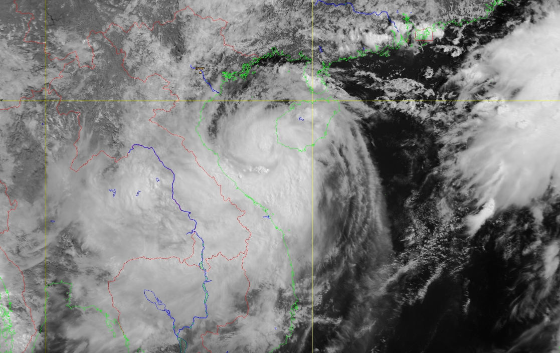 | Ảnh mây vệ tinh bão số 1 sáng nay – Ảnh: NCHMF |