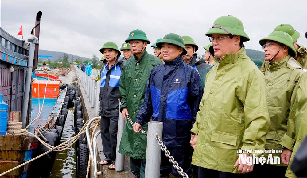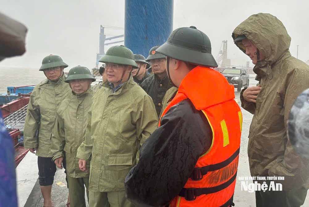 Bí thư Tỉnh uỷ Nguyễn Đức Trung đã đến kiểm tra, chỉ đạo công tác ứng phó với bão số 10 tại khu neo đậu, tránh trú bão Lạch Lò và cống Nghi Quang tại xã Trung Lộc; Cảng Cửa Lò, hệ thống kè biển tại phường Cửa Lò.