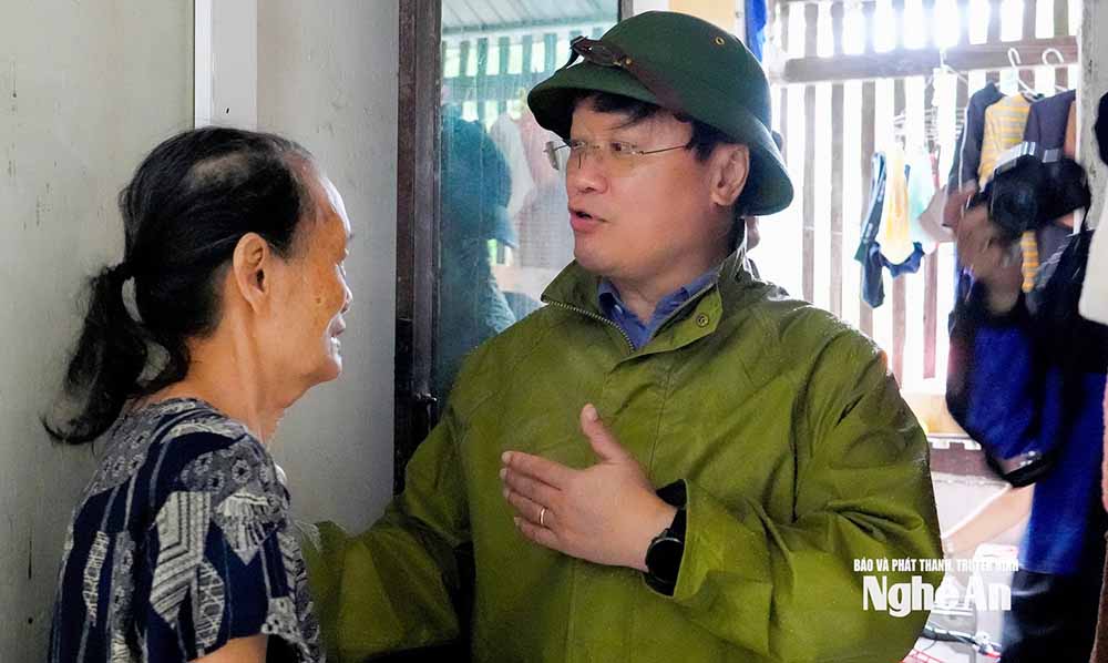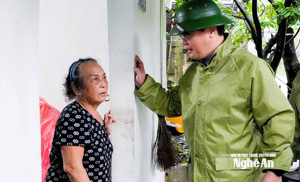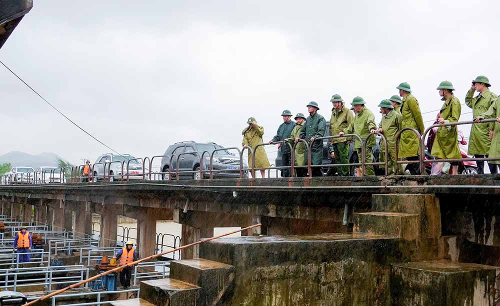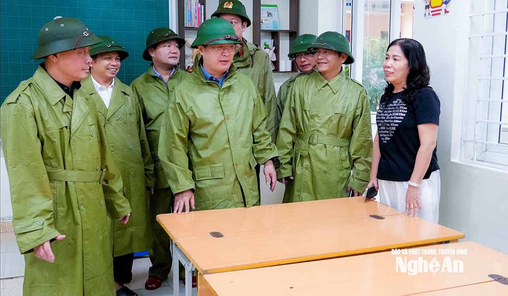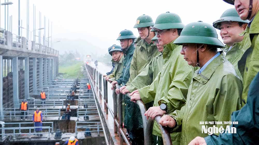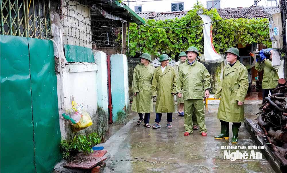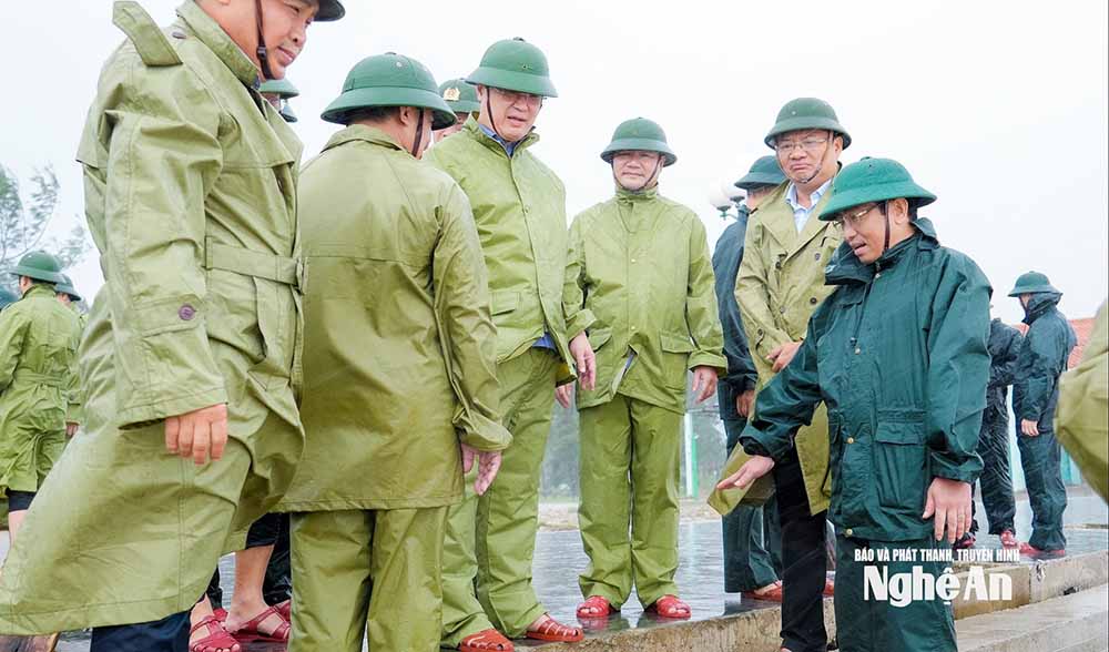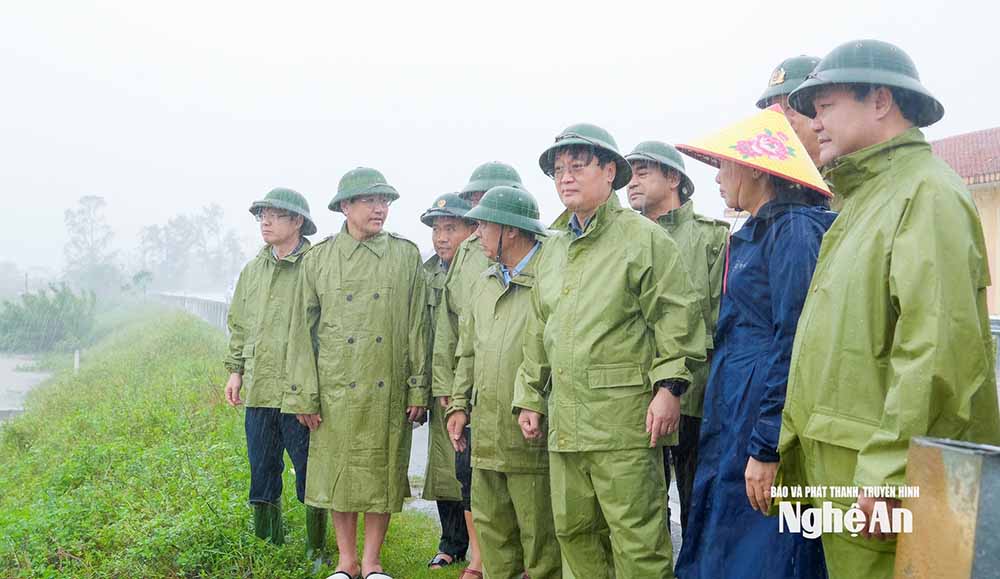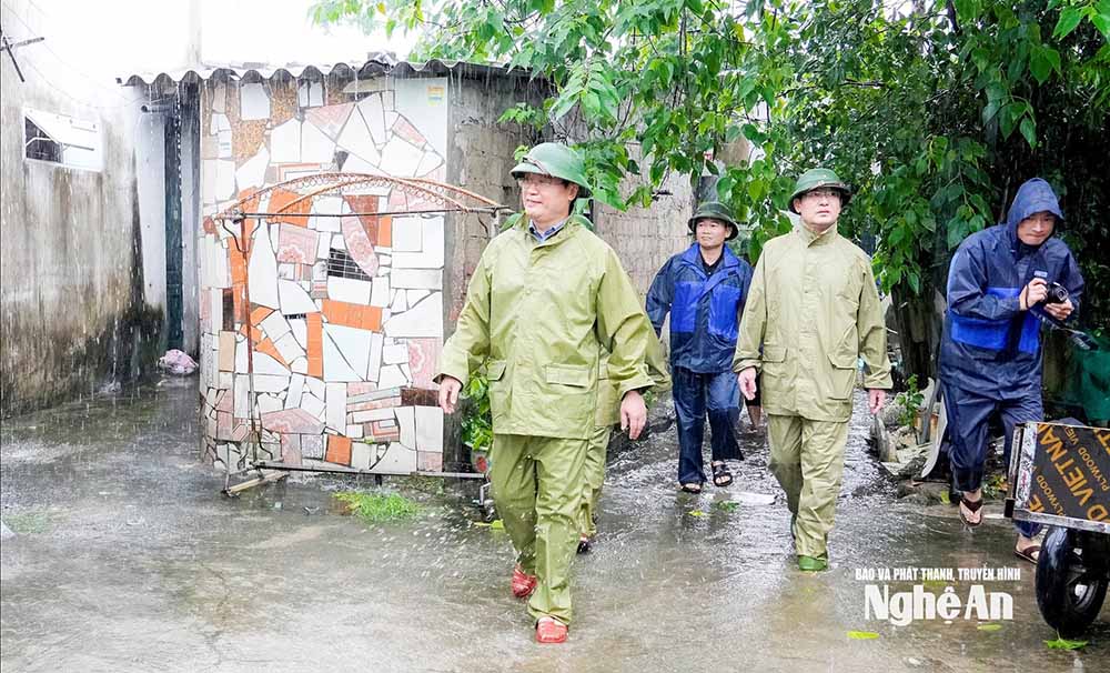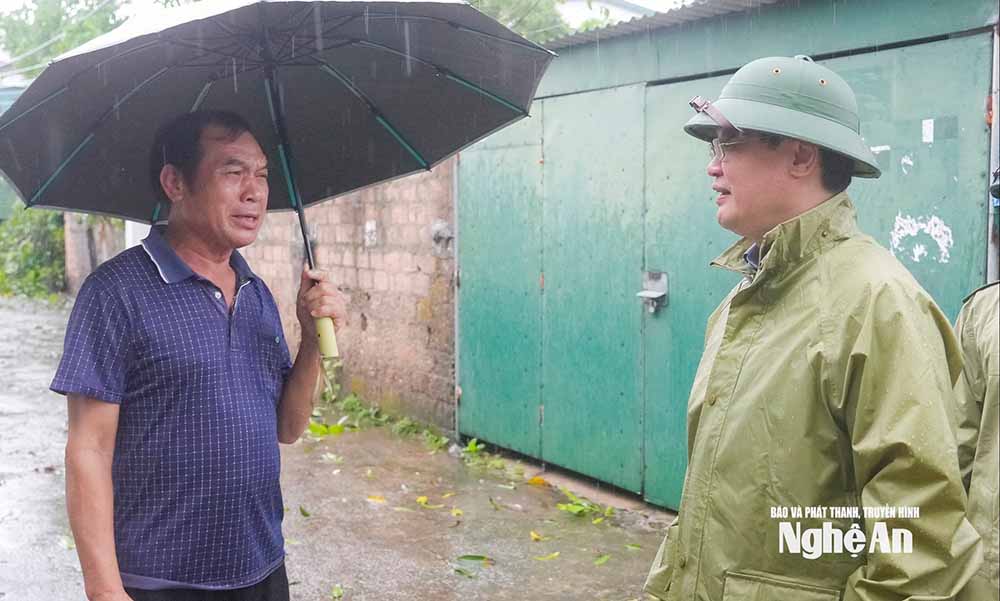 Tiếp đó, Bí thư Tỉnh uỷ Nguyễn Đức Trung đã đến kiểm tra công tác sơ tán người dân tại phường Cửa Lò, phường Trường Vinh, phường Thành Vinh; kiểm tra công tác tiêu thoát nước, chống ngập úng tại cống Rào Đừng, trạm bơm Bến Thuỷ.