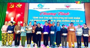 Lãnh đạo phường Trường Vinh trao quà hỗ trợ cho các gia đình bị thiệt hại do bão số 10
