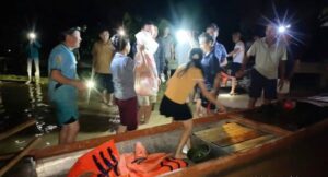 Hàng trăm cán bộ, chiến sĩ và bà con nhân dân Nghệ An cùng nhau nỗ lực suốt đêm để ứng phó lũ.