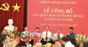 Phường Thành Vinh công bố các quyết định về tổ chức bộ máy và bổ nhiệm cán bộ.