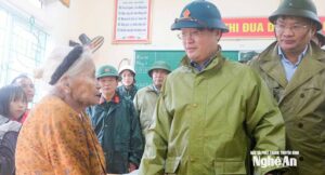 Lãnh đạo phường Trường Vinh trao quà hỗ trợ cho các gia đình bị thiệt hại do bão số 10