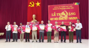 Đảng bộ phường Hưng Lộc vừa tổ chức lễ trao tặng huy hiệu Đảng đợt 19/5/2025 cho 45 đảng viên. Đ.c Nguyễn Huy Hoàng – UVBTV Thành ủy, chủ tịch UBMTTQ thành phố về dự và trao huy hiệu cho các đảng viên. ...