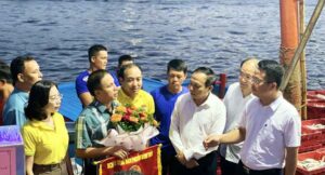 Chủ tịch Hội nông dân tỉnh chúc mừng đội tàu khai thác đạt sản lượng cao