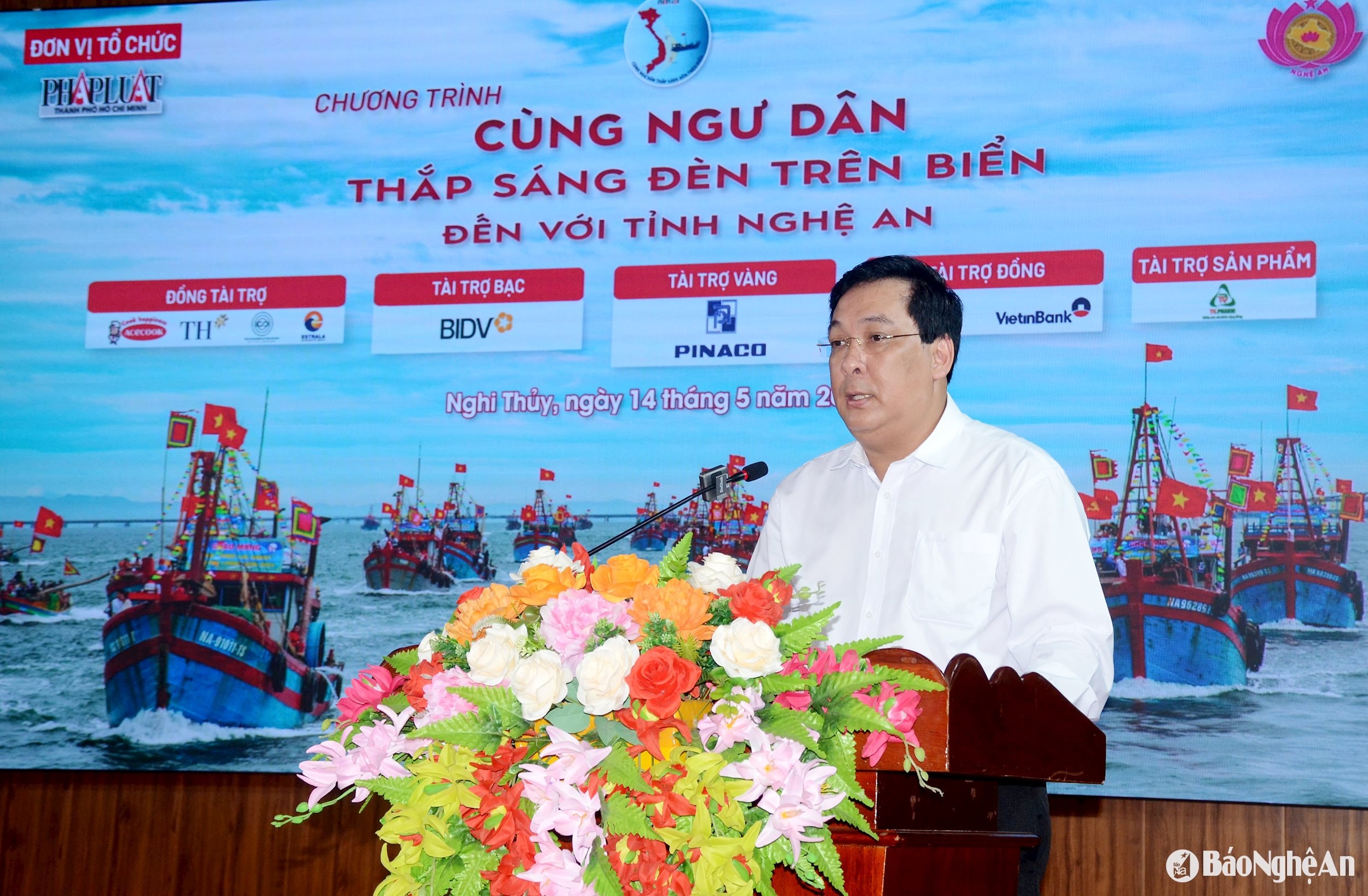 Sáng 14/5, tại phường Nghi Thủy (thành phố Vinh), Báo Pháp luật Thành phố Hồ Chí Minh phối hợp UBND tỉnh Nghệ An tổ chức Chương trình “Cùng ngư dân thắp sáng đèn trên biển”.