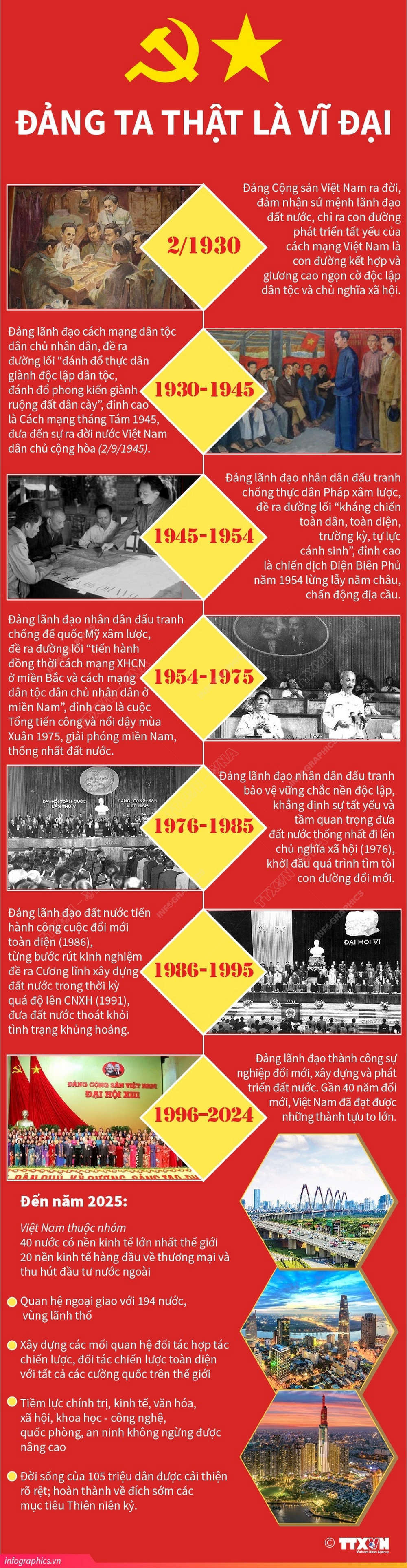 95 năm dưới sự lãnh đạo của Đảng, dân tộc Việt Nam đã tạo nên những kỳ tích trong lịch sử, trải qua kỷ nguyên đấu tranh giành độc lập dân tộc, xây dựng chủ nghĩa xã hội (1930-1975); kỷ nguyên thống nhất đất nước, đổi mới (1975-2025). Và giờ đây, đất nước bước vào kỷ nguyên vươn mình của dân tộc, khởi đầu bằng sự kiện trọng đại – Đại hội XIV của Đảng. Trải qua các thời kỳ, Đảng ta luôn khẳng định “là đội tiên phong của giai cấp công nhân, đại biểu trung thành lợi ích của giai cấp công nhân, nhân dân lao động và của cả dân tộc”.