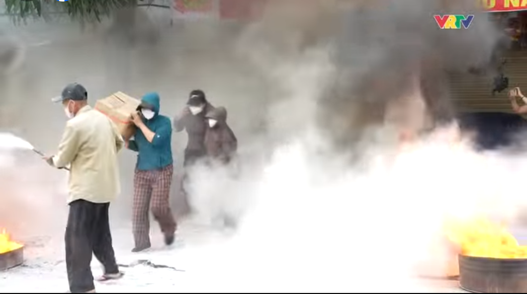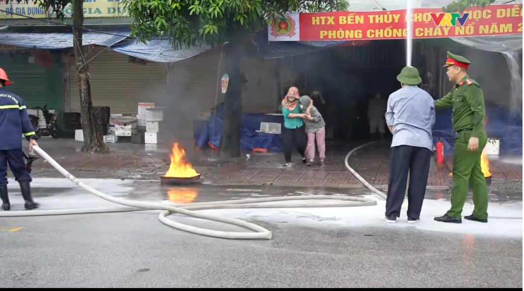 Tình huống giả định, đám cháy bùng phát từ một kiot bán hàng khu vực đình chính, lực lượng bảo vệ, đội chữa cháy chợ Bến thủy đã triển khai các biện pháp chữa cháy tại chỗ, di chuyển hàng hóa ra ngoài và đồng thời điện báo cho cảnh sát PCCC. Sau khi nhận tin, Đội cảnh sát chữa cháy và cứu nạn cứu hộ số 1 Công an tỉnh Nghệ An đã huy động 2 xe chữa cháy và 20 cán bộ chiến sỹ tiếp cận hiện trường. Lực lượng cảnh sát PCCC đã phối hợp với đội chữa cháy cơ sở triển khai đội hình chữa cháy và cứu nạn, cứu hộ những người bị mắc kẹt trong đám cháy. Sau 20 phút phối hợp tác chiến, đám cháy đã được khống chế và dập tắt, những người mắc kẹt và nhiều mặt hàng hóa được đưa ra khỏi đám cháy an toàn.
