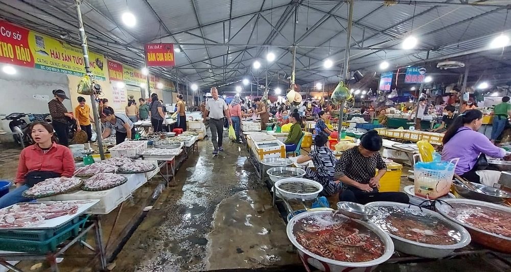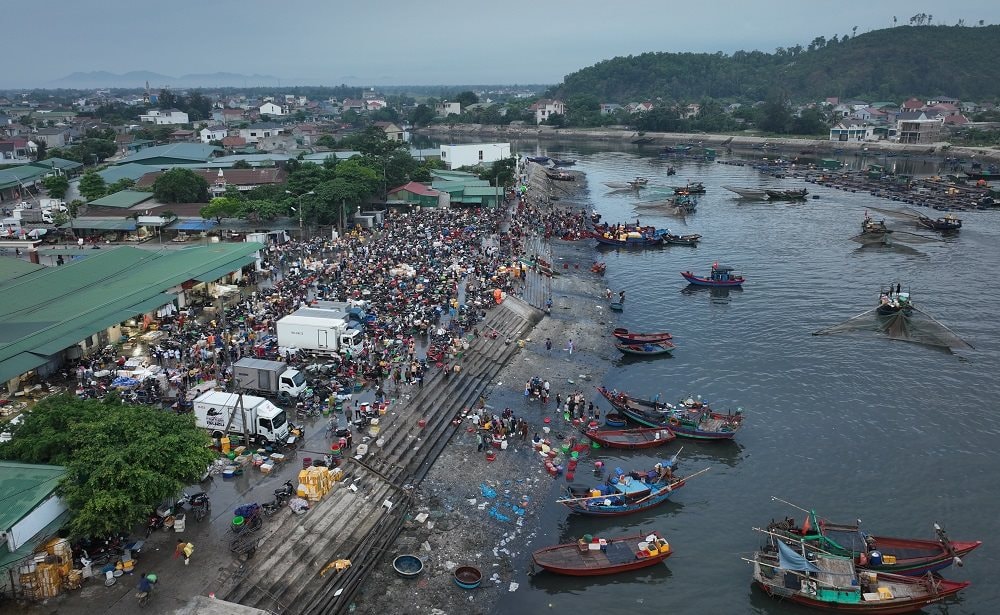 Tiếng máy nổ, tiếng nói cười, trao đổi mua bán… vang động cả bến sông. Ngoài ngư dân, thương lái và tiểu thương, mặc dù chưa đến mùa du lịch nhưng du khách ở nhiều nơi cũng đến trải nghiệm bến – chợ cá.Người dân trong vùng ví von, mỗi sáng, ở bến – chợ cá Nghi Thủy chỉ có “trên trời dưới hải sản”. Đủ các loại hải sản, từ cá thu, cá nục, cá bạc má, cá trích, cá cơm cho đến mực, tôm, ghẹ, ốc hương, tép biển, tôm tít…