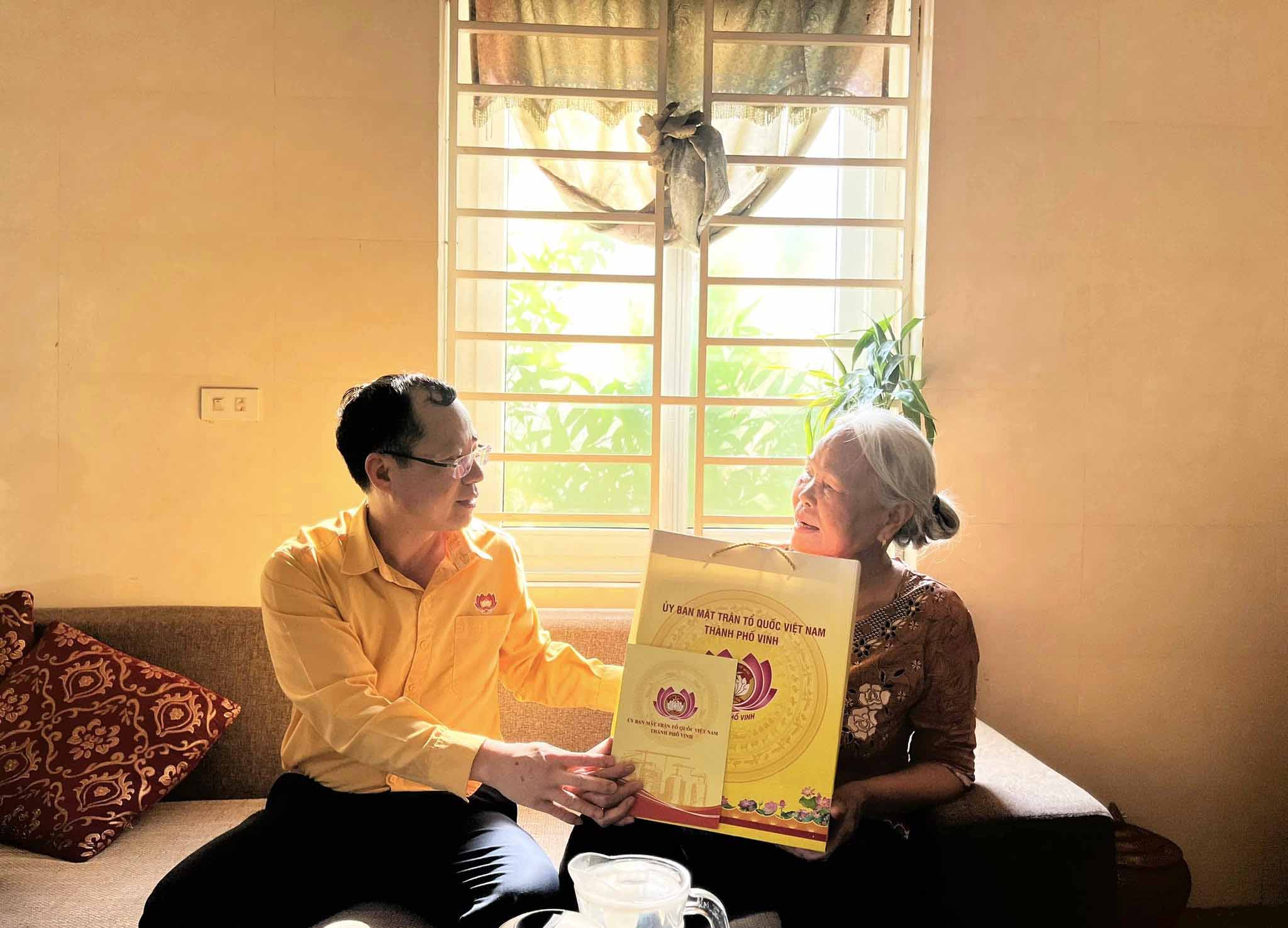 Dịp này, UBMTTQ thành phố Vinh đã trao tặng 45 suất quà, mỗi suất quà trị giá 1,2 triệu đồng. Tại các gia đình, đồng chí Nguyễn Huy Hoàng đã thăm hỏi sức khỏe, đời sống sinh hoạt và bày tỏ lòng biết ơn sâu sắc đối với sự cống hiến, hy sinh to lớn của các thương, bệnh binh, gia đình chính sách trong sự nghiệp đấu tranh giải phóng dân tộc, bảo vệ nền độc lập, tự do của Tổ quốc. Đồng thời mong muốn các gia đình tiếp tục phát huy truyền thống cách mạng, nỗ lực vươn lên trong cuộc sống là tấm gương sáng cho các thế hệ con cháu noi theo.