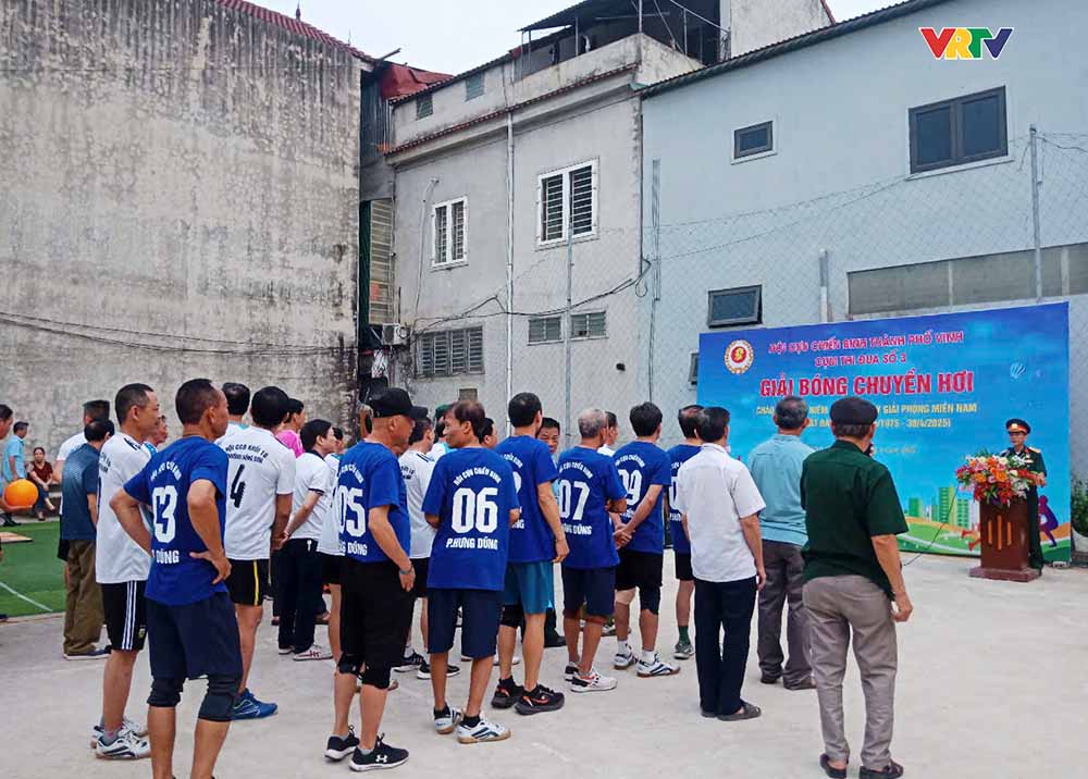 Chào mừng kỷ niệm 50 năm giải phóng Miền Nam thống nhất đất nước 30/4/1975-30/4/2025, kỷ niệm 35 năm ngày thành lập hội CCB thành phố Vinh, sáng ngày 27/4, Hội cựu chiến binh phường Bến Thủy tổ chức giải bóng chuyền hơi cụm thi đua số 3, Hội CCB thành phố Vinh.
