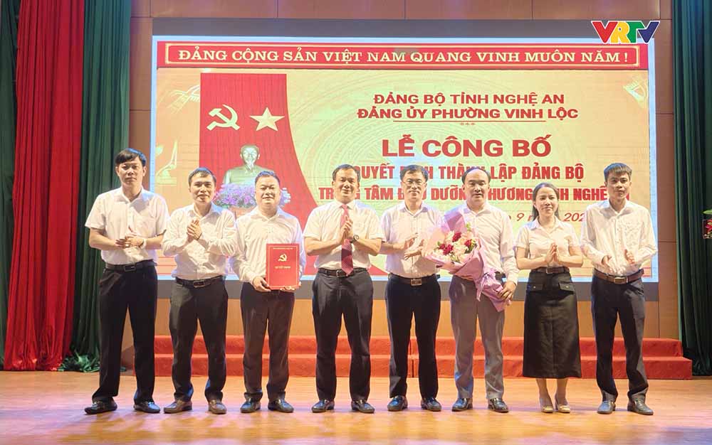 Tại buổi lễ, Ban Xây dựng Đảng phường Vinh Lộc đã công bố Quyết định của Ban Chấp hành Đảng bộ phường Vinh Lộc về việc thành lập Đảng bộ Trung tâm Điều dưỡng Thương binh Nghệ An gồm 63 đảng viên. Đồng thời, công bố Quyết định chỉ định Ban Chấp hành, Ban Thường vụ, Bí thư, các Phó Bí thư Đảng ủy; Ủy ban Kiểm tra, Chủ nhiệm và Phó Chủ nhiệm UBKT Đảng ủy Trung tâm, nhiệm kỳ 2025 – 2030. Theo đó, đồng chí Nguyễn Thiếu Lâm – Giám đốc Trung tâm giữ chức Bí thư Đảng ủy Trung tâm Điều dưỡng Thương binh Nghệ An, nhiệm kỳ 2025 – 2030.