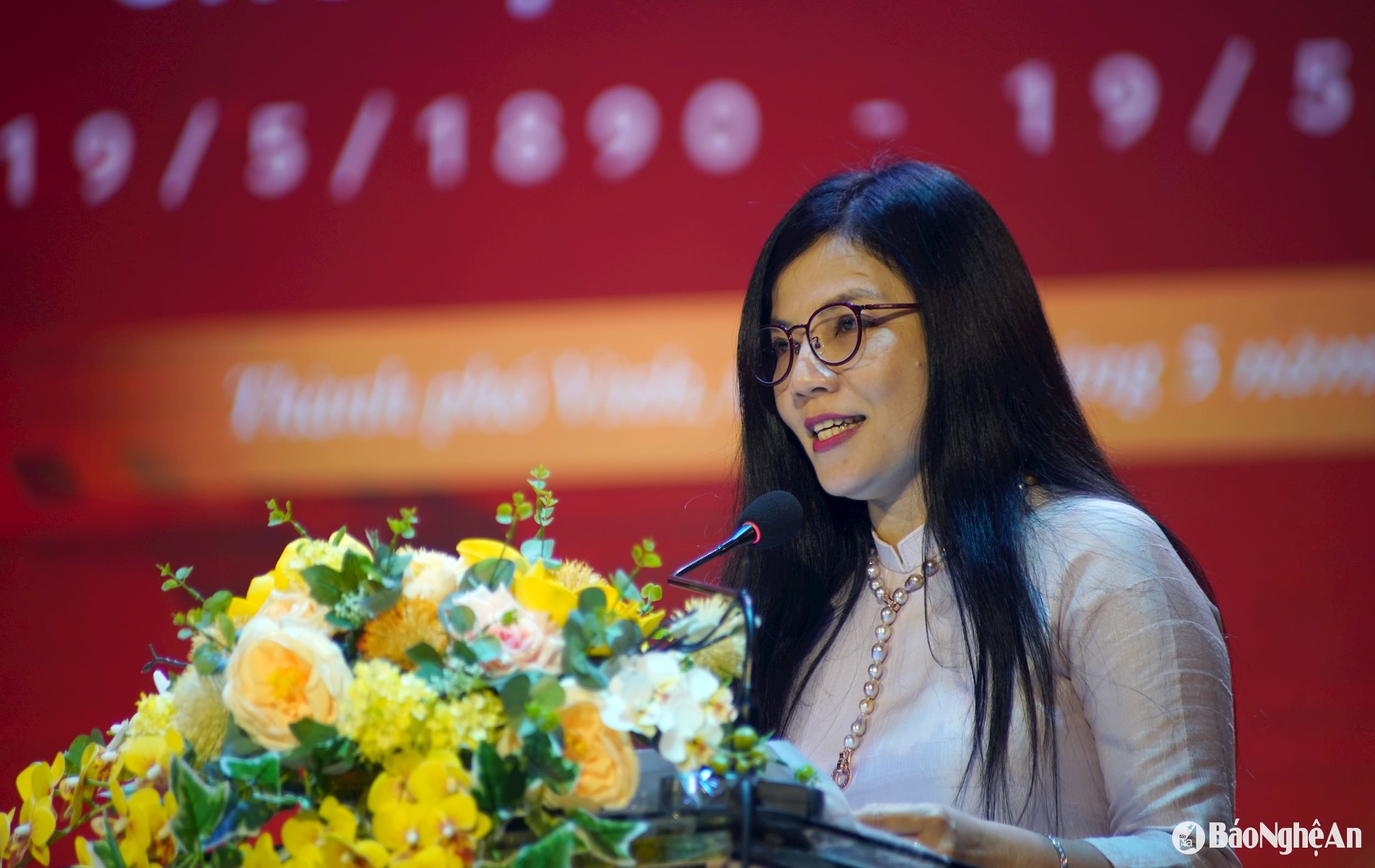 Giám đốc Sở Văn hóa, Thể thao và Du lịch Nghệ An Trần Thị Mỹ Hạnh phát biểu tại chương trình. Ảnh: Thanh Quỳnh