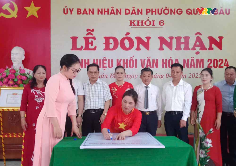 Tại buổi lễ, đại diện Phòng văn hóa khoa học và thông tin thành phố Vinh đã trao quyết định công nhận khối văn hóa năm 2024 cho ban Cán sự khối 6. Tiếp đó, Các tổ chức đoàn thể, các tổ dân cư trong khối đã tiến hành ký cam kết thực hiện các phong trào thi đua.