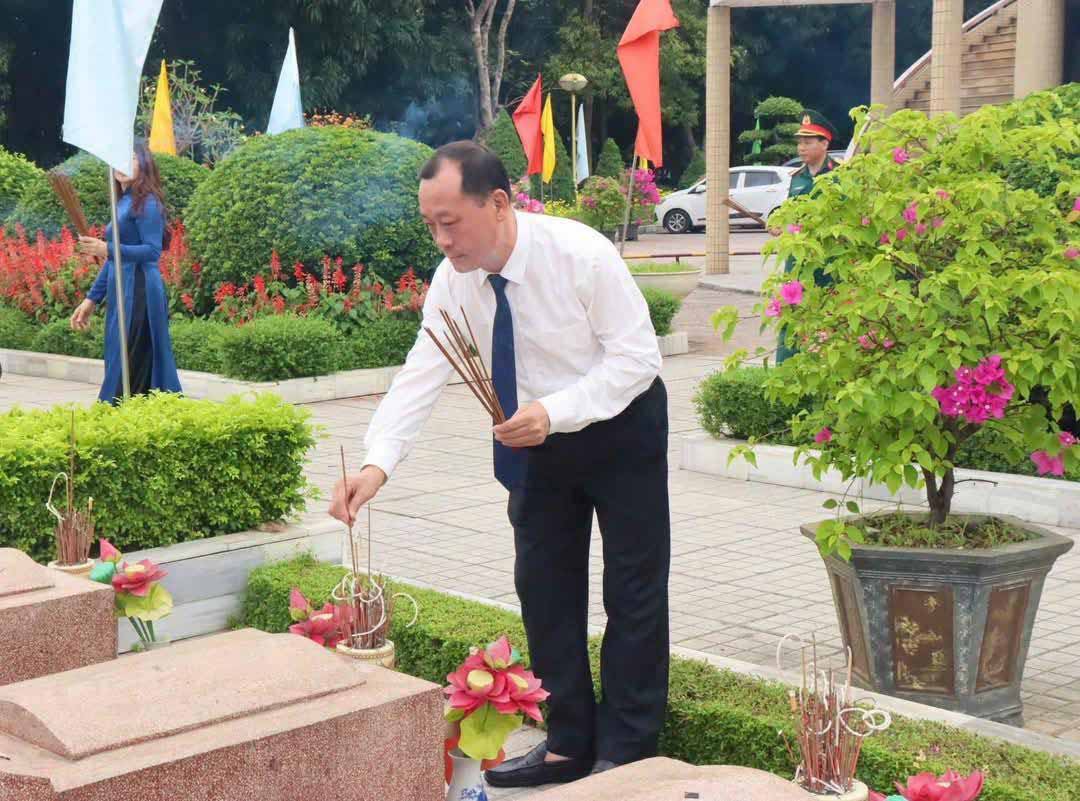 Nhân kỷ niệm 50 năm Ngày giải phóng miền Nam, thống nhất đất nước (30.4.1975 – 30.4.2025), sáng 26 – 4, lãnh đạo Thành ủy, HĐND, UBND, Ủy ban MTTQ Việt Nam TP do đ/c Phan Đức Đồng – UVBTV Tỉnh ủy, Bí thư Thành ủy, Chủ tịch HĐND thành phố dẫn đầu đã đến viếng và dâng hoa, dâng hương tại Nghĩa trang Liệt sĩ Thành phố.