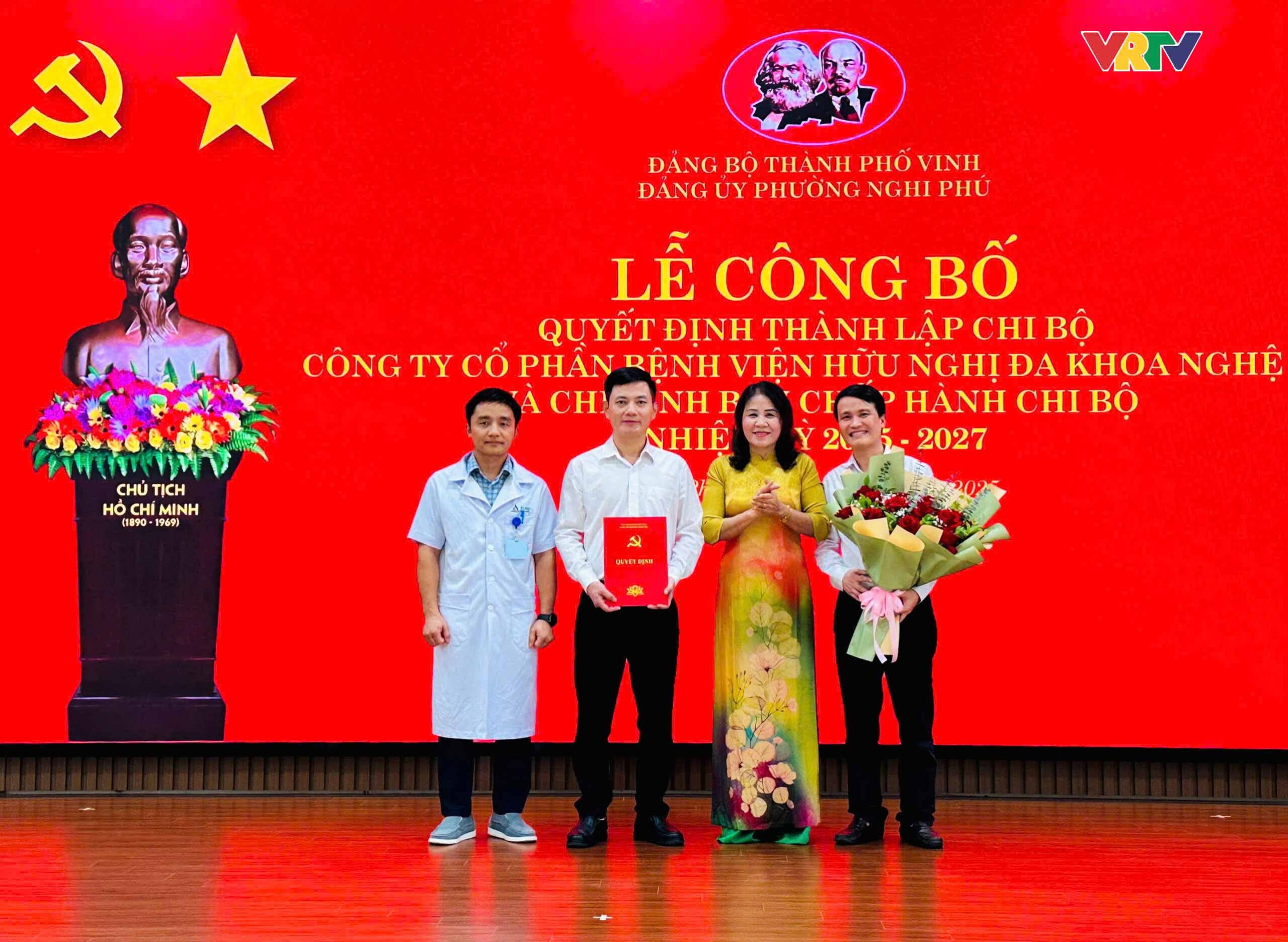 Chiều ngày 13/5, Đảng uỷ phường Nghi Phú tổ chức Lễ công bố quyết định thành lập Chi bộ Công ty cổ phần Bệnh viện Hữu nghị đa khoa Nghệ An và Chỉ định Ban Chấp hành Chi bộ nhiệm kỳ 2025 – 2027. Về dự lễ có đ.c Hoàng Thị Hải Yến – phó trưởng ban tổ chức Thành ủy Vinh.