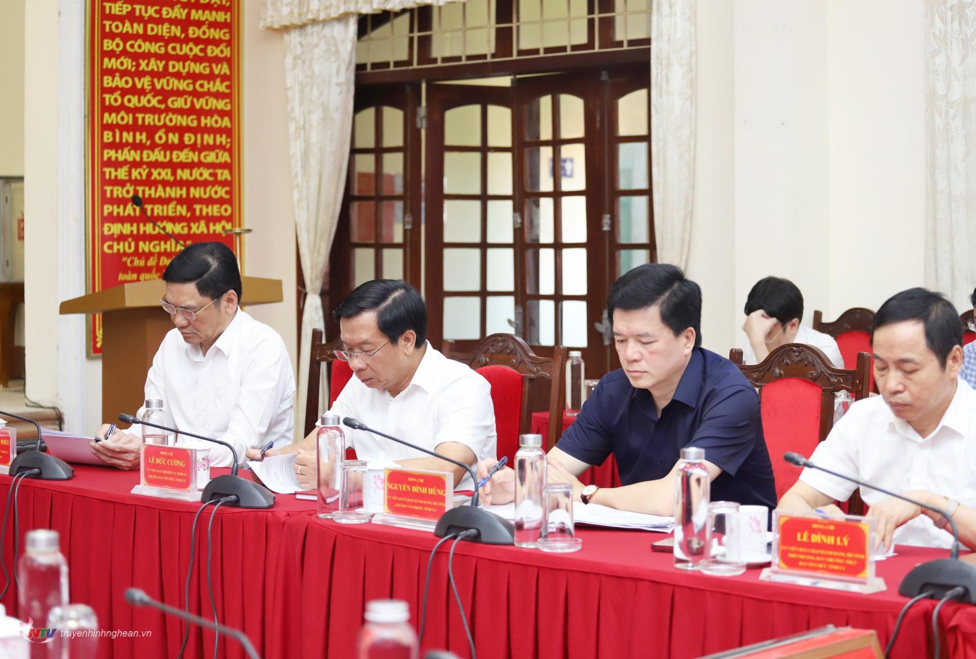 Các đồng chí Thường trực Tỉnh ủy, Ủy viên Ban Thường vụ Tỉnh ủy, thành viên BCĐ tỉnh tham dự cuộc họp.