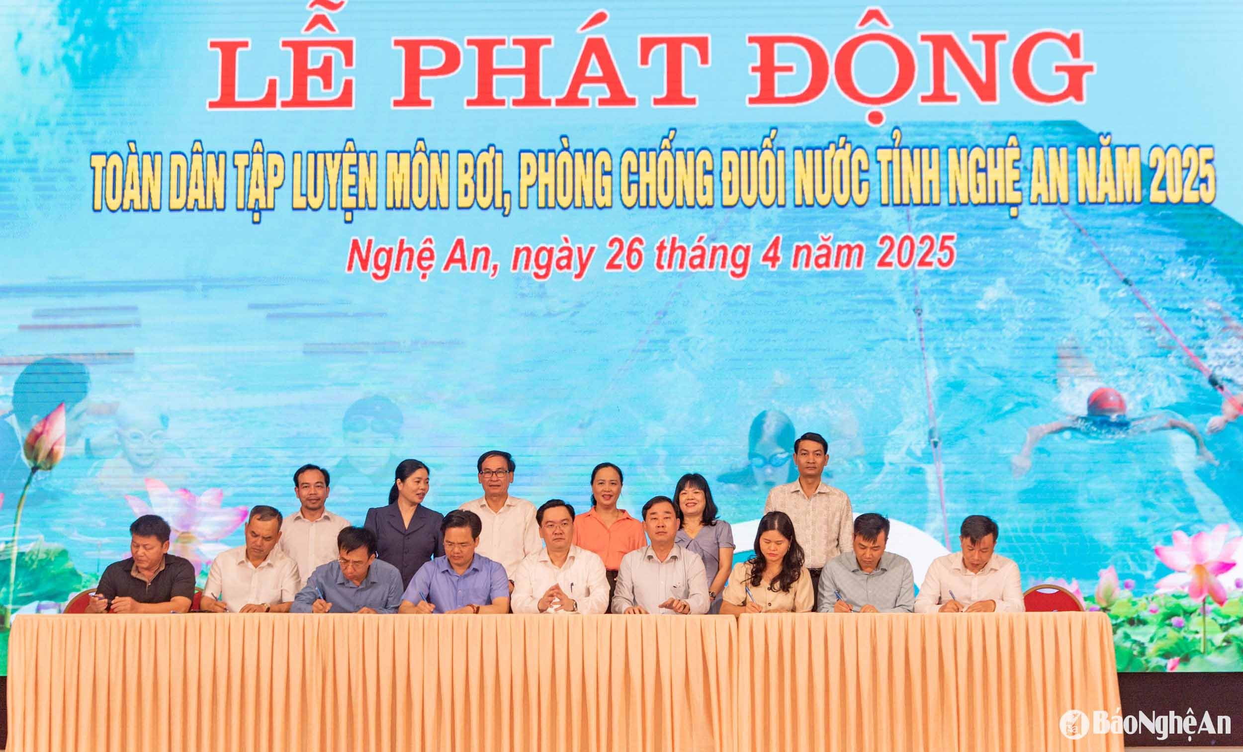 Tại lễ phát động, lãnh đạo Sở Văn hóa – Thể thao – Du lịch và lãnh đạo các huyện, thành đã ký cam kết tổ chức thực hiện phong trào toàn dân tập luyện môn bơi phòng, chống đuối nước năm 2025. Dịp này, Sở Văn hóa – Thể thao – Du lịch đã trao tặng 20 suất quà cho các em học sinh có hoàn cảnh khó khăn trên địa bàn thành phố.