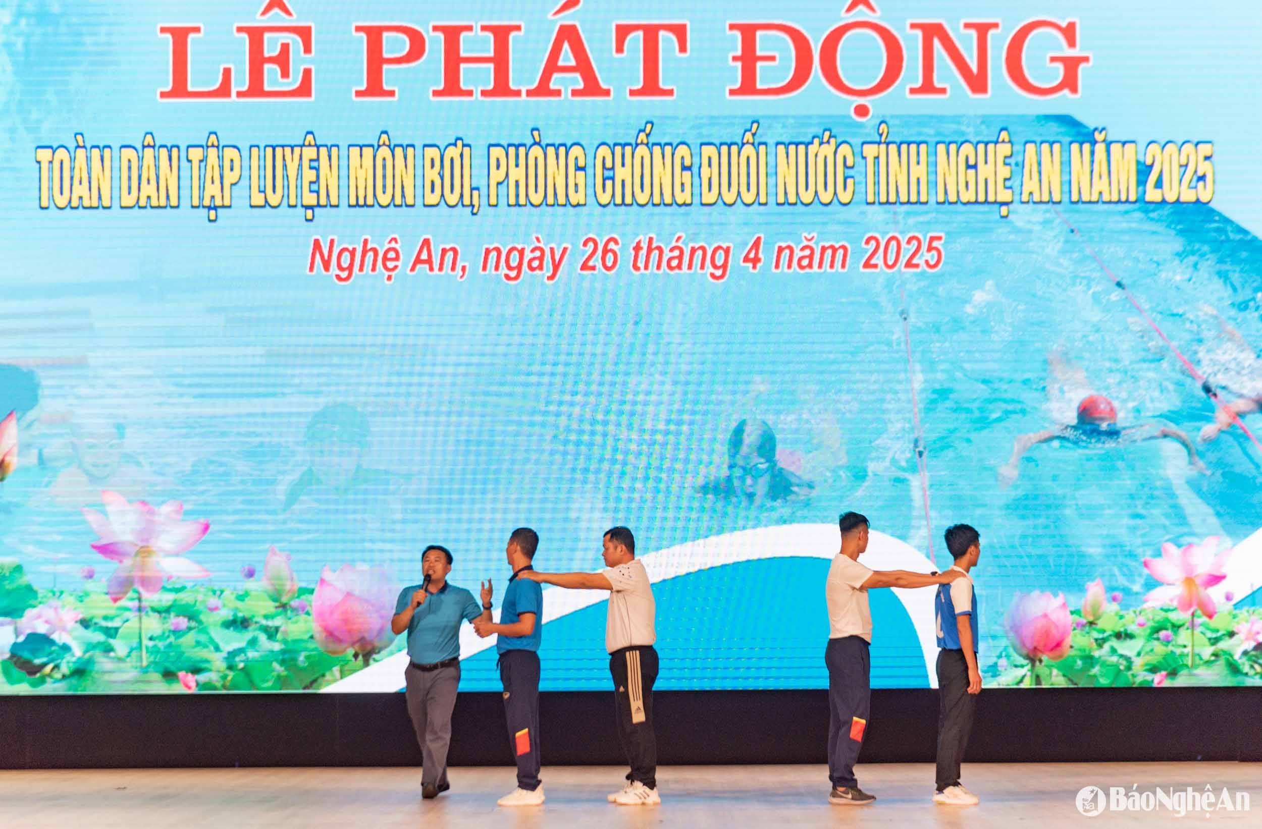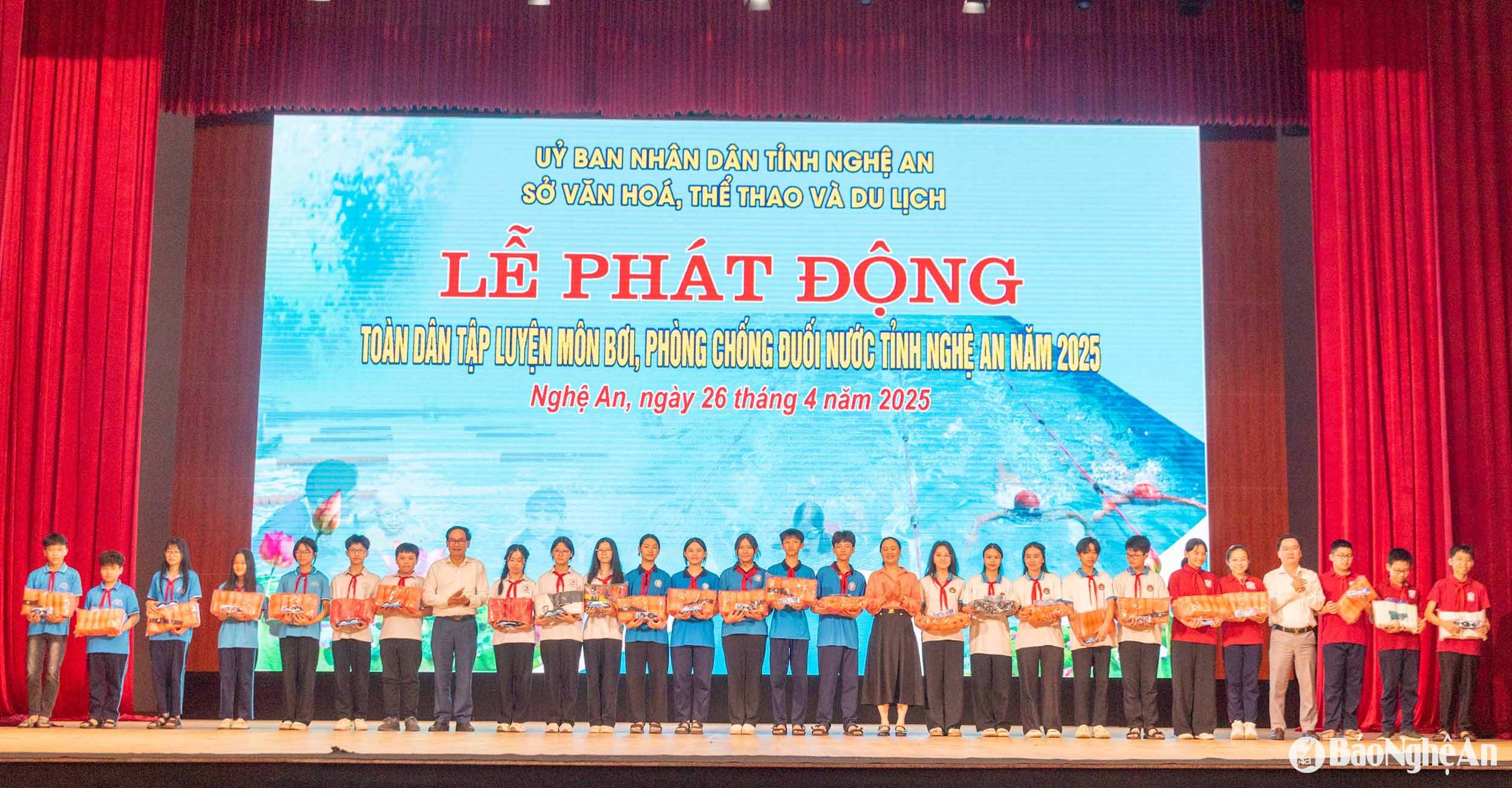 Sáng ngày 26/4, Sở Văn hóa – Thể thao – Du lịch tỉnh Nghệ An phối hợp với UBND thành phố Vinh tổ chức Lễ phát động toàn dân tập luyện môn bơi, phòng, chống đuối nước tỉnh Nghệ An năm 2025. Dự lễ có ông Đinh Trọng Lương – Cục thể dục thể thao Việt Nam, đại diện lãnh đạo Sở Văn hóa – Thể thao – Du lịch, cùng đại diện lãnh đạo các huyện, thành phố Vinh và hơn 300 cán bộ, giáo viên và các em học sinh trên địa bàn thành phố Vinh.