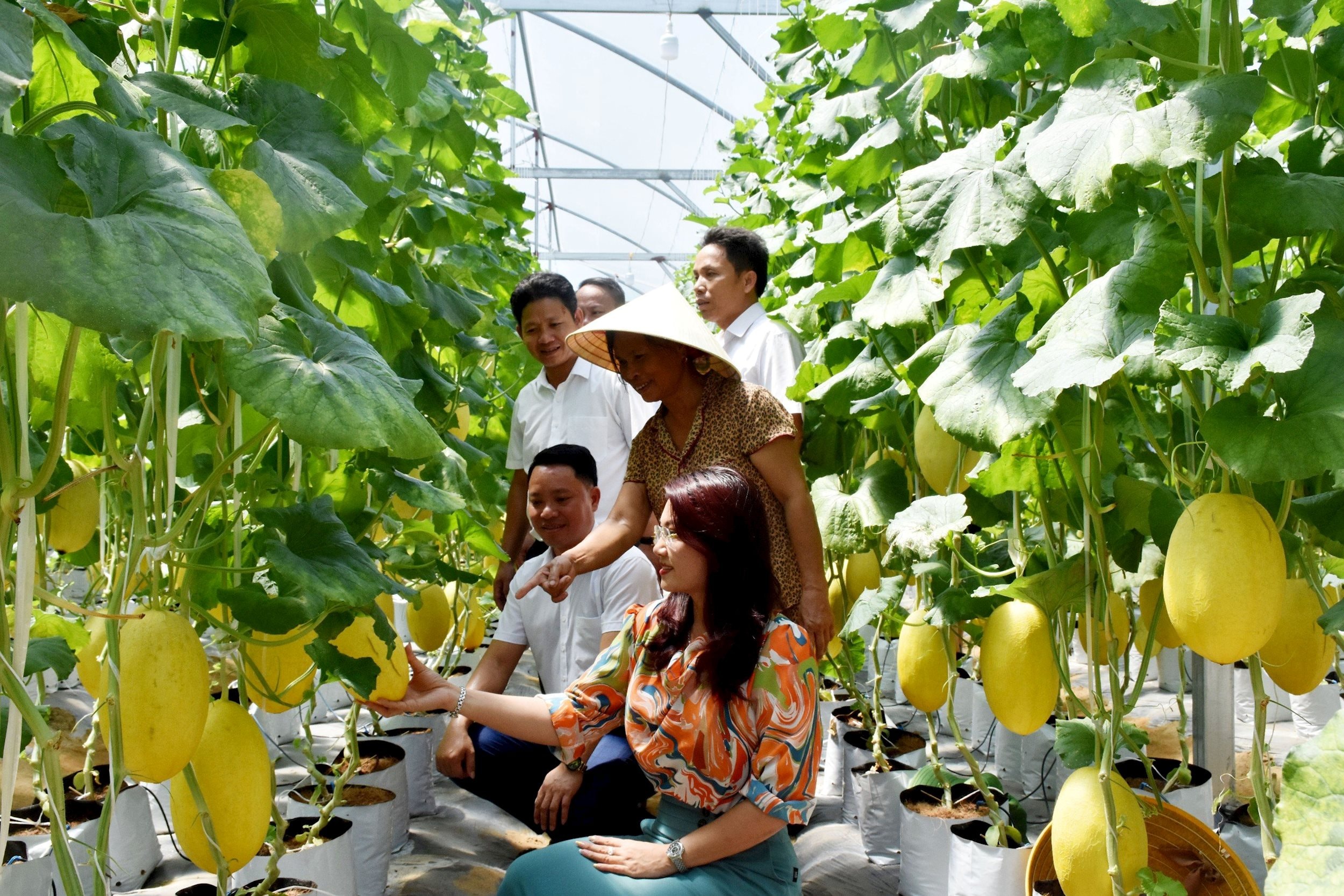 Mô hình dưa lưới đầu tiên ở Nghi Hương trồng trong nhà màng cho thu nhập cao. Ảnh: Thu Hương