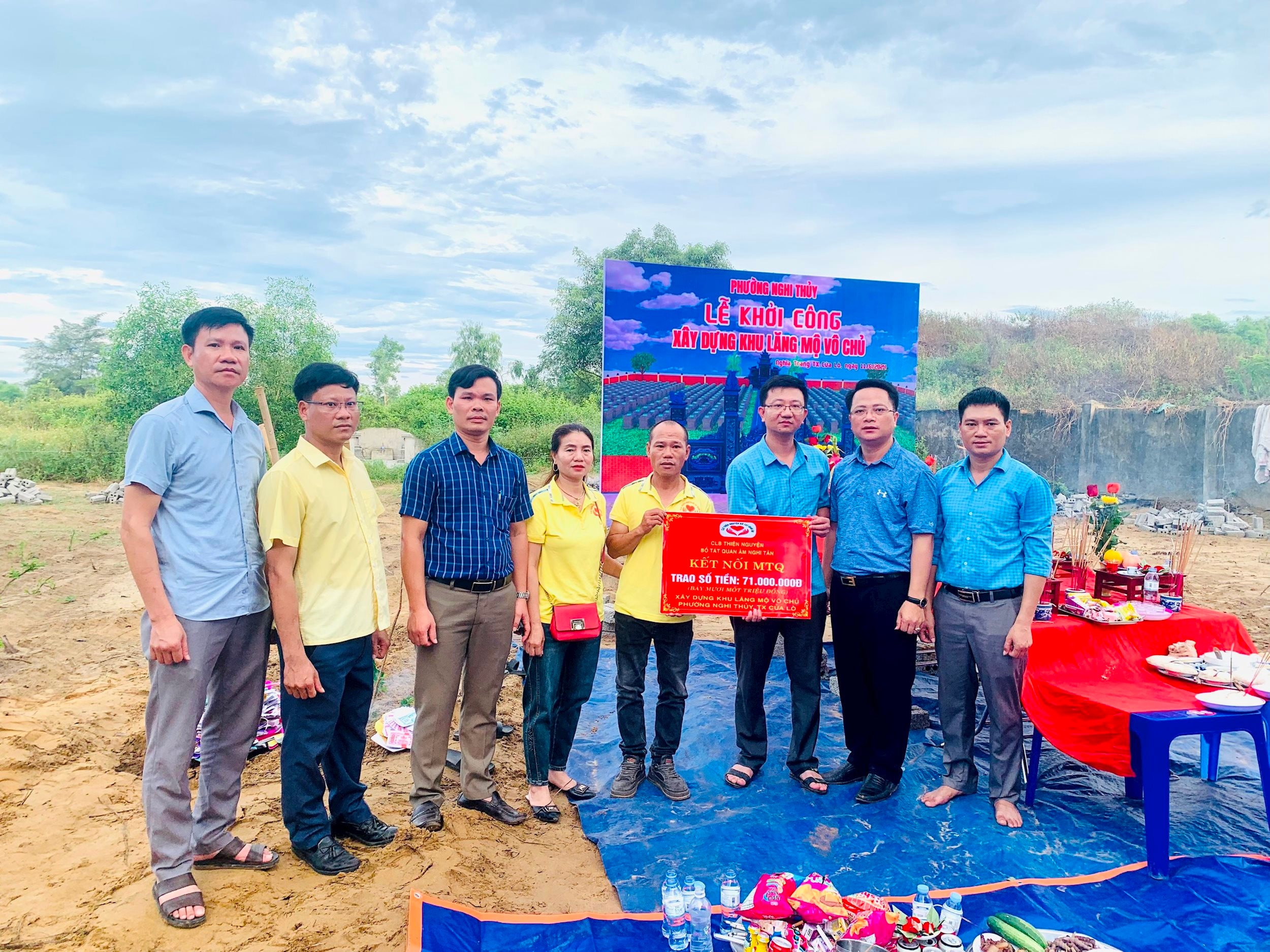 Điển hình như gia đình ông bà Hoàng Nhật An, Trịnh Thị Hiến cùng các con đã ủng hộ 55 triệu đồng. Hay CLB Thiện nguyện Bồ tát quan âm phường Nghi Tân, thị xã Cửa Lò đã kết nối với các mạnh thường quân quyên góp, ủng hộ 71 triệu đồng trao ngay trong lễ khởi công tôn tạo mộ vô chủ ở phường Nghi Thủy.