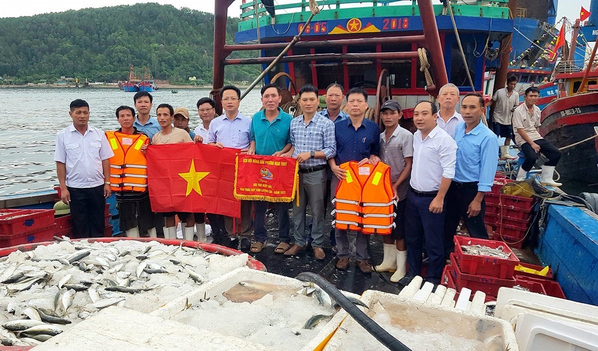 Hội Nông dân với mô hình tặng cờ Tổ quốc, áo phao cho tàu cá đạt sản lượng cao để tuyên truyền ngư dân tích cực vươn khơi, bám biển. Mỗi một tàu cá ra khơi đều treo cờ đỏ sao vàng như những “cột mốc sống” để khẳng định chủ quyền biển, đảo thiêng liêng của Tổ quốc.