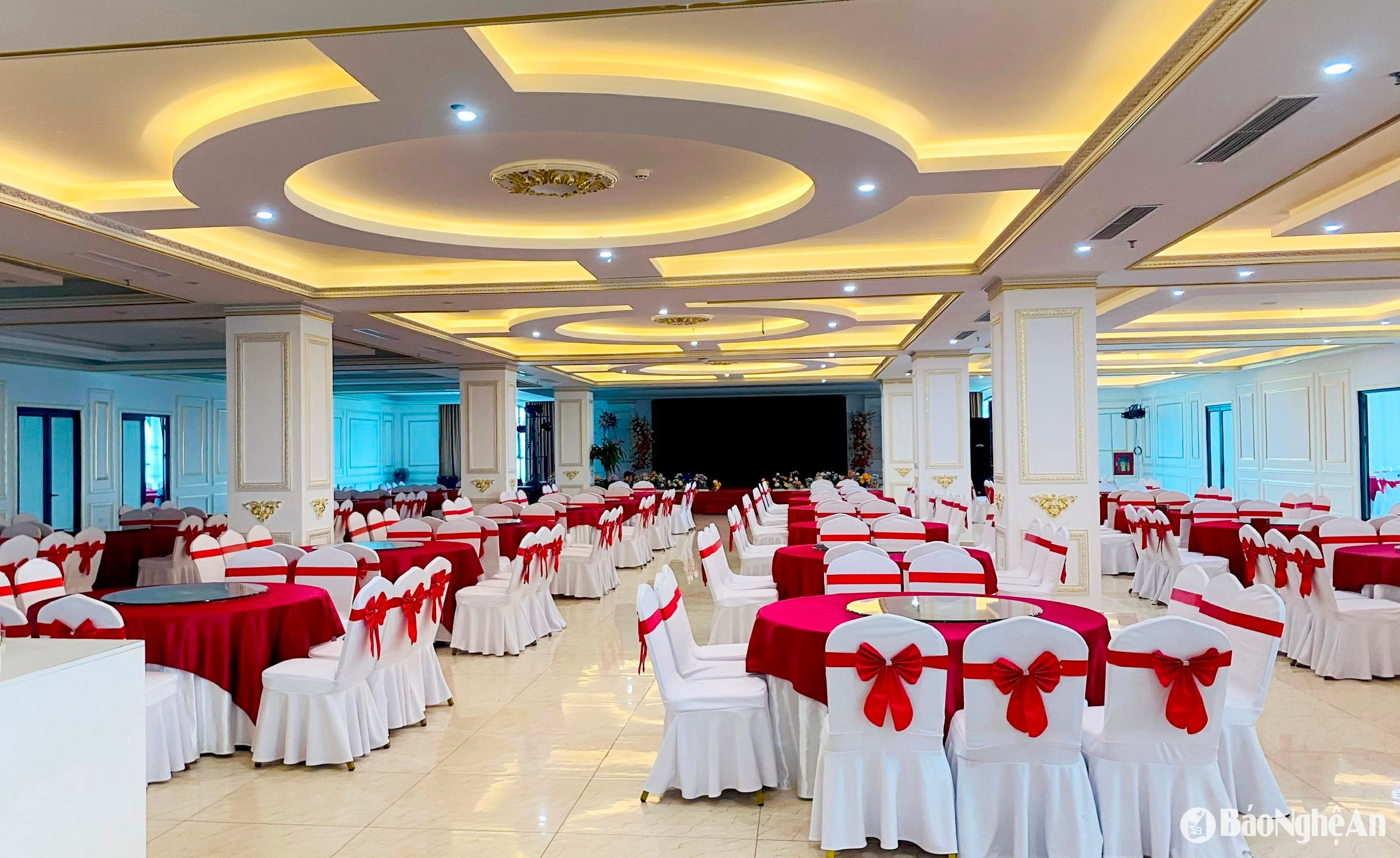 Không gian tiệc sang trọng, rộng rãi tại một khách sạn lớn ở biển Cửa Lò. Ảnh: Quang An