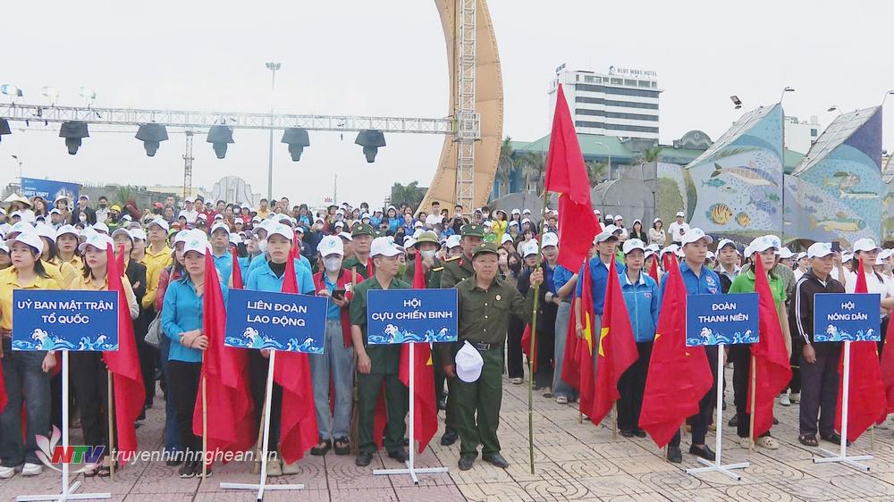 Ngay từ sáng sớm, rất đông cán bộ công nhân viên, đoàn viên, thanh niên đến từ các cơ quan, đơn vị trên địa bàn TP Vinh đã có mặt tại quảng trường Bình Minh để tham gia lễ phát động hưởng ứng phong trào “Vì biển Cửa Lò xanh, sạch, đẹp và phục vụ du lịch năm 2025”.