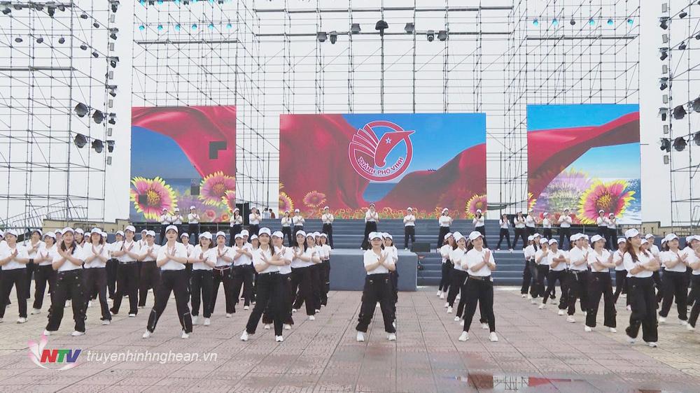 | Màn trình diễn tập thể chào mừng tại buổi lễ phát động. |