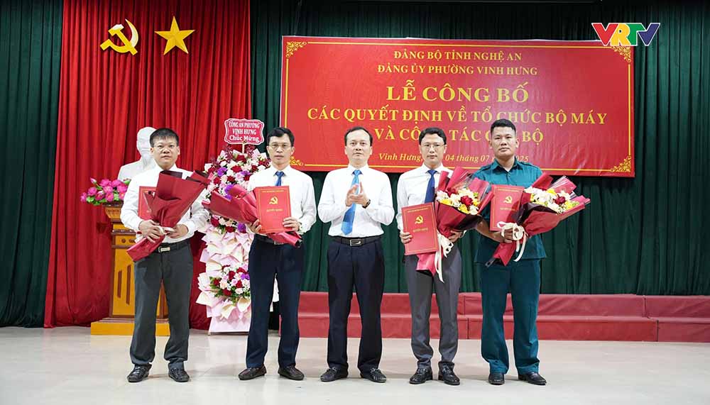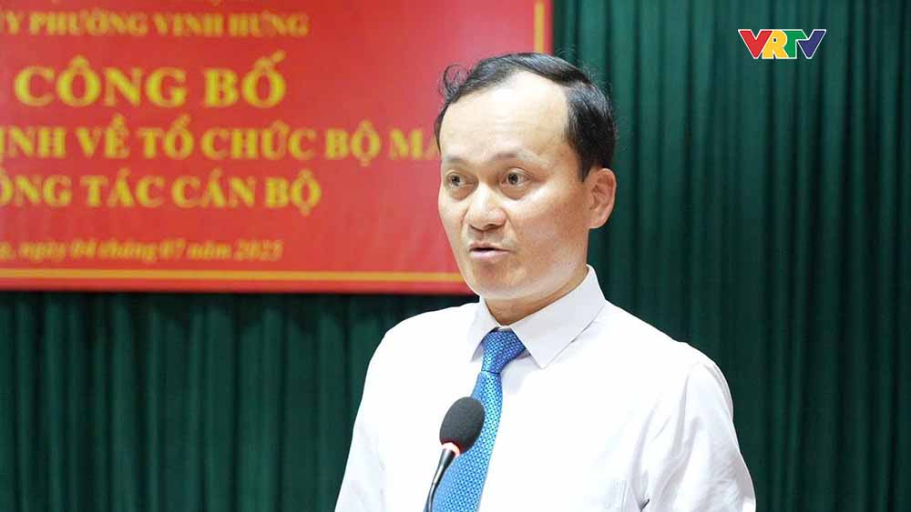 Chiều ngày 4/7, Đảng ủy phường Vinh Hưng tổ chức lễ công bố và trao quyết định về thành lập các cơ quan chuyên trách giúp việc Đảng ủy, các tổ chức cơ sở Đảng được thành lập mới và công tác cán bộ, nhiệm kỳ 2025 – 2030.