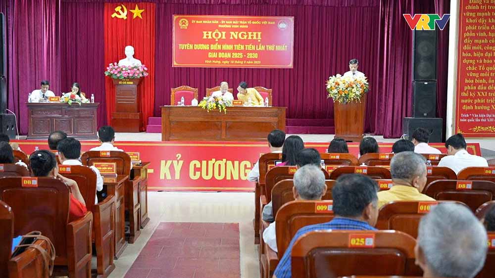 Sáng ngày 18/9, UBND, ủy ban MTTQ Việt Nam phường Vinh Hưng tổ chức hội nghị tuyên dương điển hình tiên tiến giai đoạn 2020-2025; triển khai phương hướng nhiệm vụ giai đoạn 2025-2030. Tham dự hội nghị có đại diện Ban thi đua UBND tỉnh Nghệ An. Về phía phường có Đồng chí Chu Hữu Bằng, Bí thư Đảng ủy, Chủ tịch HĐND phường. Cùng các đồng chí lãnh đạo Đảng uỷ, HĐND, UBND, Uỷ ban MTTQ, trưởng các đoàn thể chính trị xã hội phường và các tập thể, cá nhân được tuyên dương, khen thưởng.