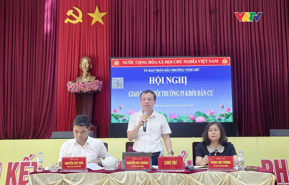 Chiều ngày 8/10, UBND phường Vinh Lộc đã tổ chức hội nghị giao ban khối trưởng 55 khối dân cư và phát động hưởng ứng ngày chuyển đổi số Quốc gia năm 2025. Các ông, bà: Nguyễn Huy Hoàng – Chủ tịch UBND phường, Nguyễn Việt Đức, Hoàng Thụy Phương – Phó Chủ tịch UBND phường đồng chủ trì hội nghị. Cùng dự có các Trưởng, phó các phòng chuyên môn; đại diện Công an, BCH quân sự và khối trưởng 55 khối dân cư trên địa bàn.