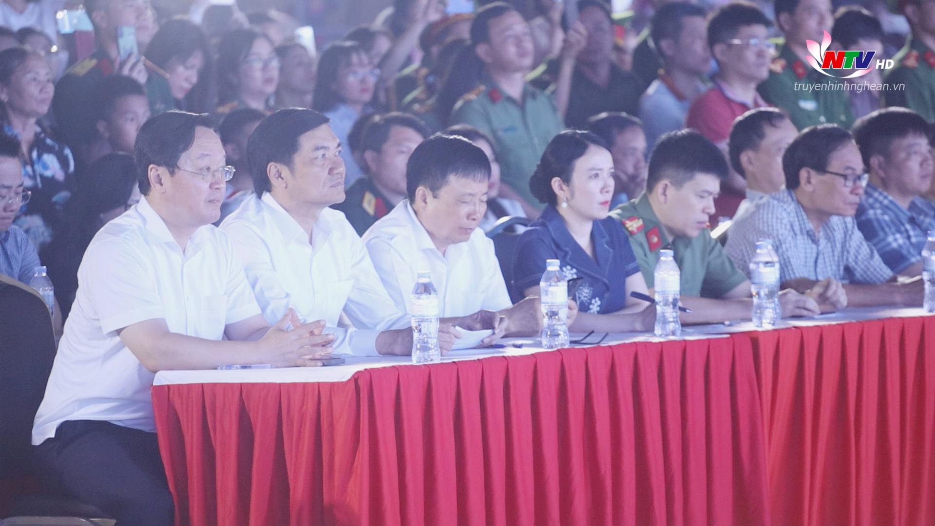 | Các đồng chí lãnh đạo tỉnh dự buổi tổng duyệt. |