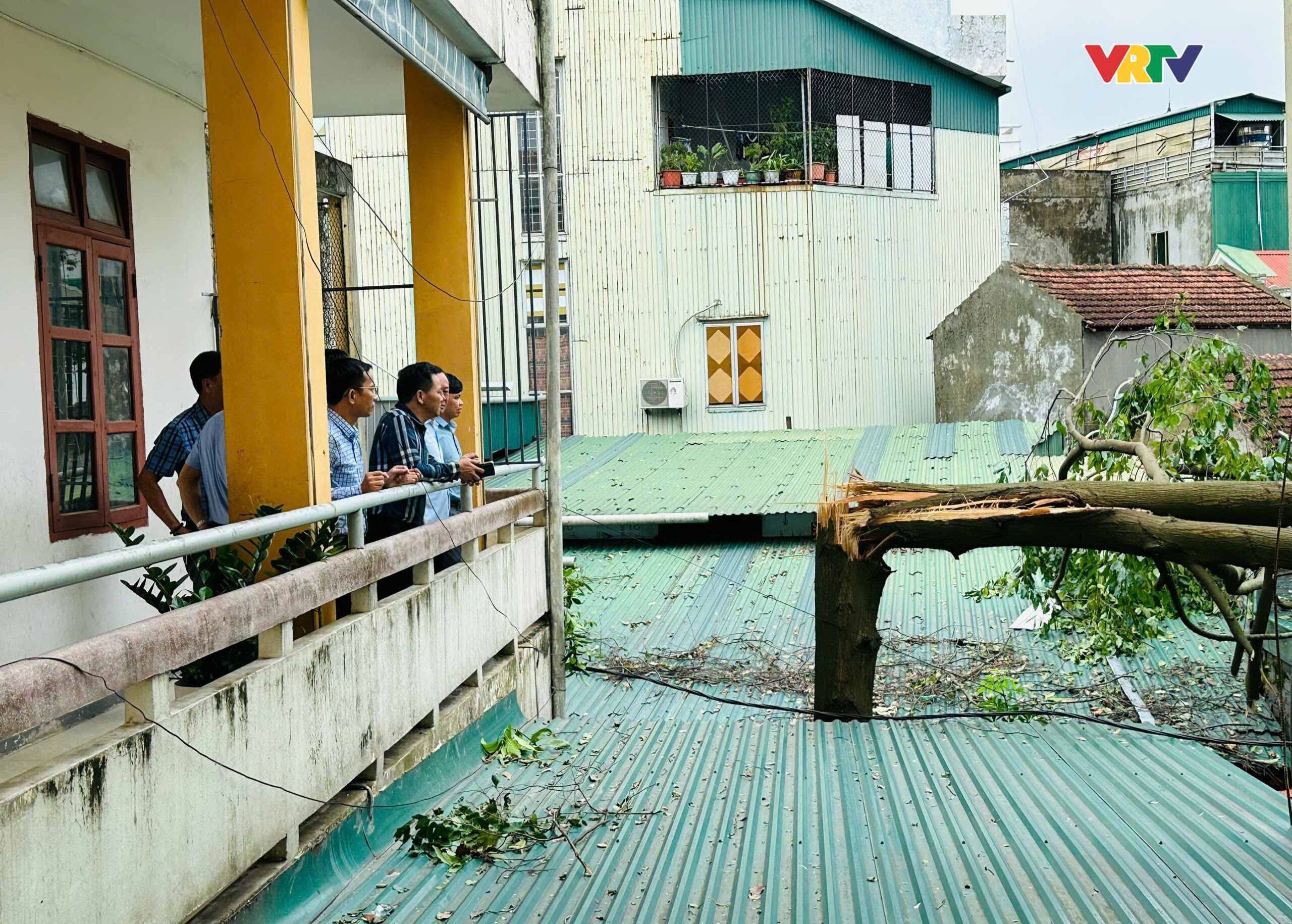 Đối với trường TH Hồng Sơn, Đ.c Bí thư Đảng ủy phường đã chỉ đạo lực lượng chức năng huy động người, phương tiện máy móc nhanh chóng hỗ trợ nhà trường và người dân xử lý cây xanh bị đổ gãy trong khuôn viên trường và trên mái nhà của các hộ dân khu vực lân cận.