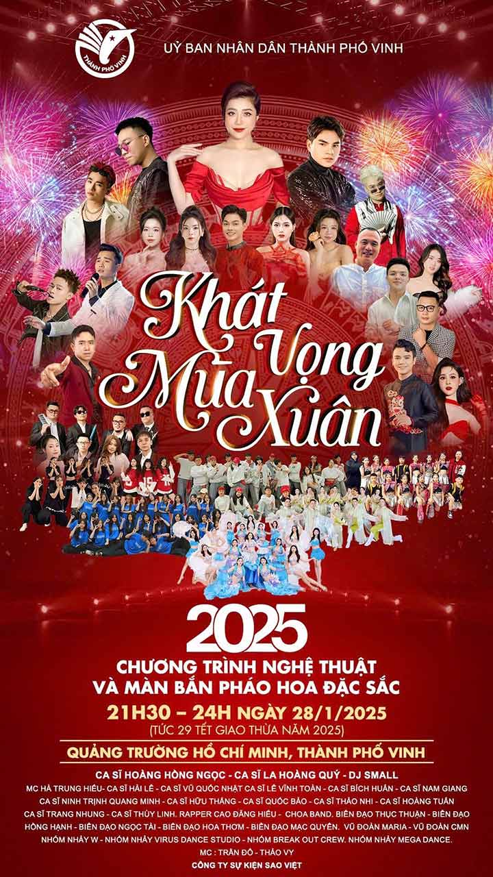Ngày 22.1, UBND TP Vinh, tỉnh Nghệ An, ban hành kế hoạch tổ chức Chương trình nghệ thuật chào đón năm mới Xuân Ất Tỵ 2025.