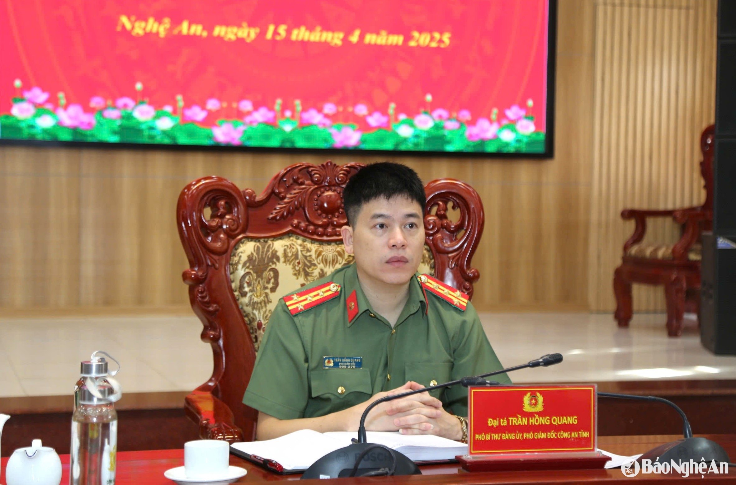 Đại tá Trần Hồng Quang – Phó Giám đốc Công an tỉnh chủ trì tại điểm cầu Nghệ An. Ảnh: Đ.C
