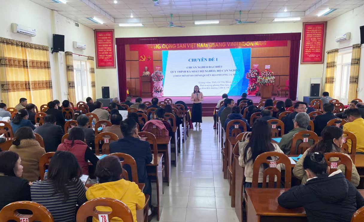 Trong thời gian tập huấn, các đại biểu được đồng chí Lê Thị Hồng Hạnh – Phó trưởng phòng Đào tạo, bồi dưỡng – Trung tâm Đào tạo, bồi dưỡng cán bộ, công chức, viên chức trực thuộc Trường Đại học Lao động – Xã hội trực tiếp quán triệt các chuyên đề như: Thực trạng và những vấn đề đặt ra trong công tác giảm nghèo bền vững ở nước ta hiện nay; Tổng quan về các Quy định, hướng dẫn thực hiện Chương trình mục tiêu quốc gia giảm nghèo bền vững giai đoạn 2021-2025 theo mô hình Chính quyền địa phương 02 cấp. Bên cạnh đó, các đại biểu còn được hướng dẫn một số nội dung giám sát, đánh giá thực hiện Chương trình mục tiêu quốc gia giảm nghèo bền vững giai đoạn 2021-2025 theo mô hình Chính quyền địa phương 02 cấp; Hướng dẫn quy trình, kỹ năng rà soát hộ nghèo, hộ cận nghèo, xác định hộ làm nông nghiệp, ngư nghiệp có mức sống trung bình năm 2025 theo mô hình chính quyền địa phương 02 cấp.