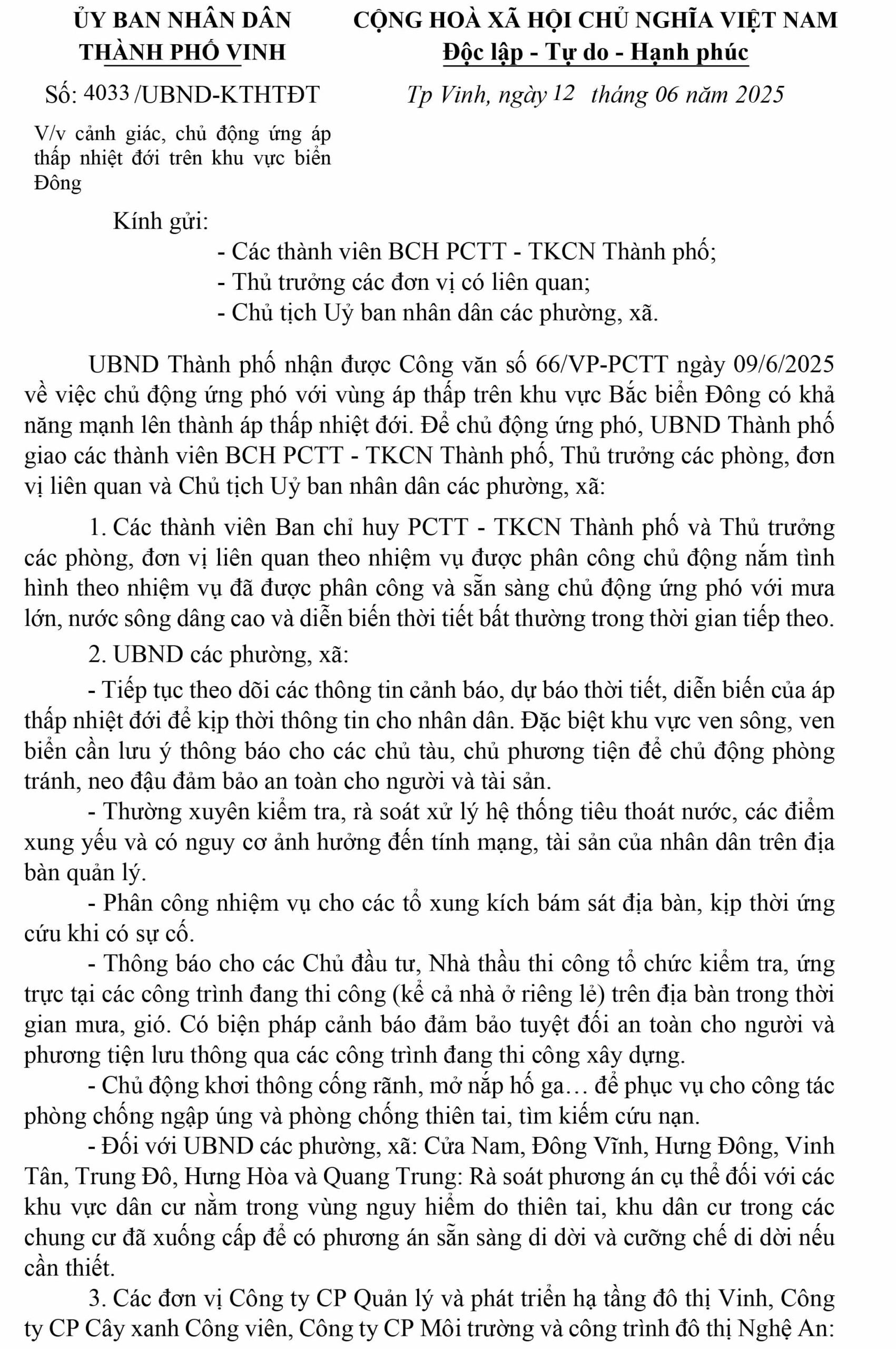 UBND Thành phố Vinh ban hành văn bản V/v cảnh giác, chủ động ứng áp thấp nhiệt đới trên khu vực biển Đông Đăng ngày 12/06/2025 Birthday Birthday